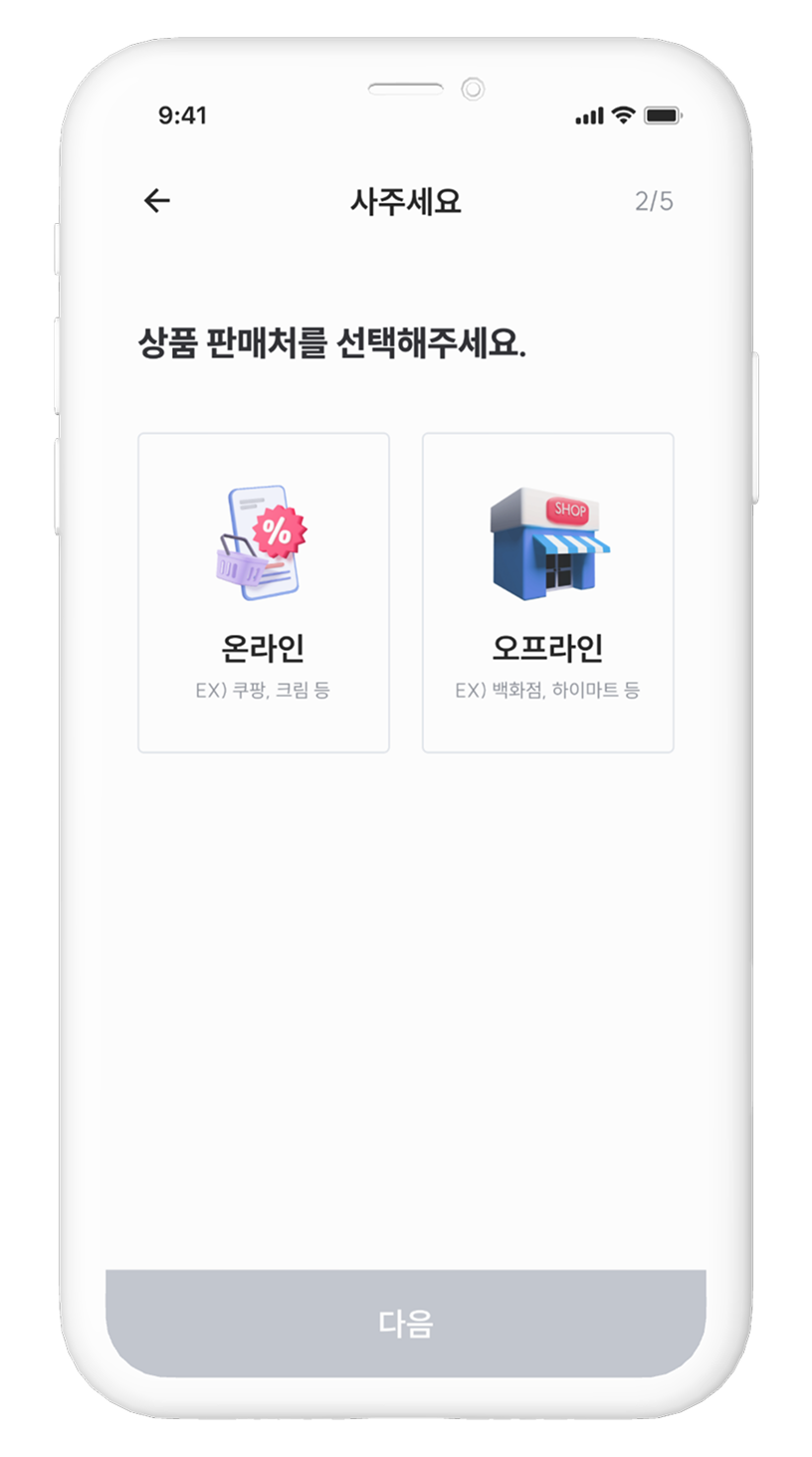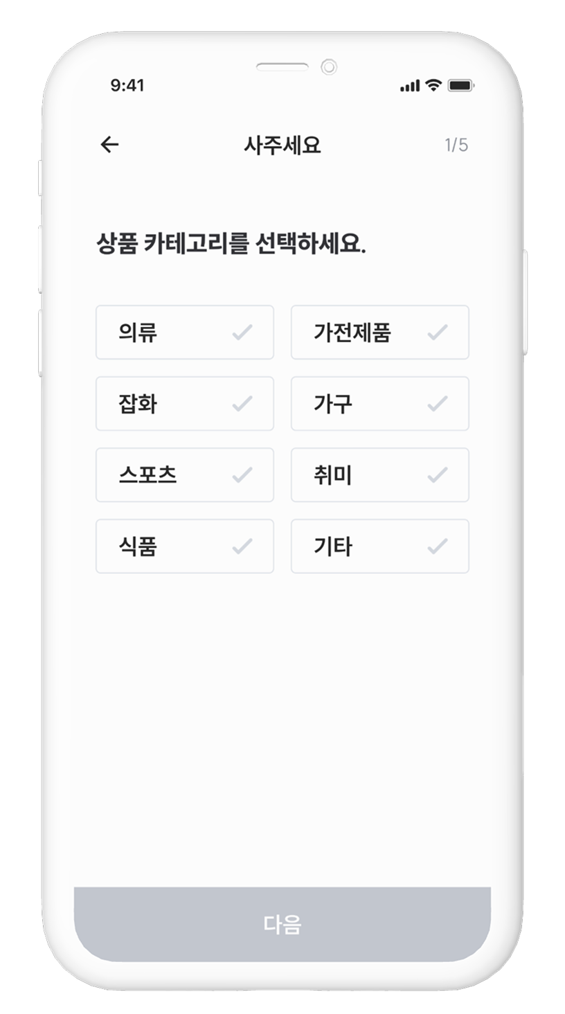 원하는 상품 카테고리를 선택해 주세요. 복수 선택가능하며, 선택 시 '다음' 버튼이 활성화됩니다.