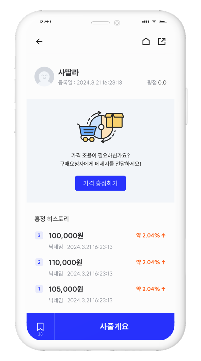 등록 전에 내용을 꼭 다시 확인해 주세요. 등록이 완료되면, 구매대행자들이 제안하는 더 저렴한 가격으로 연결됩니다.