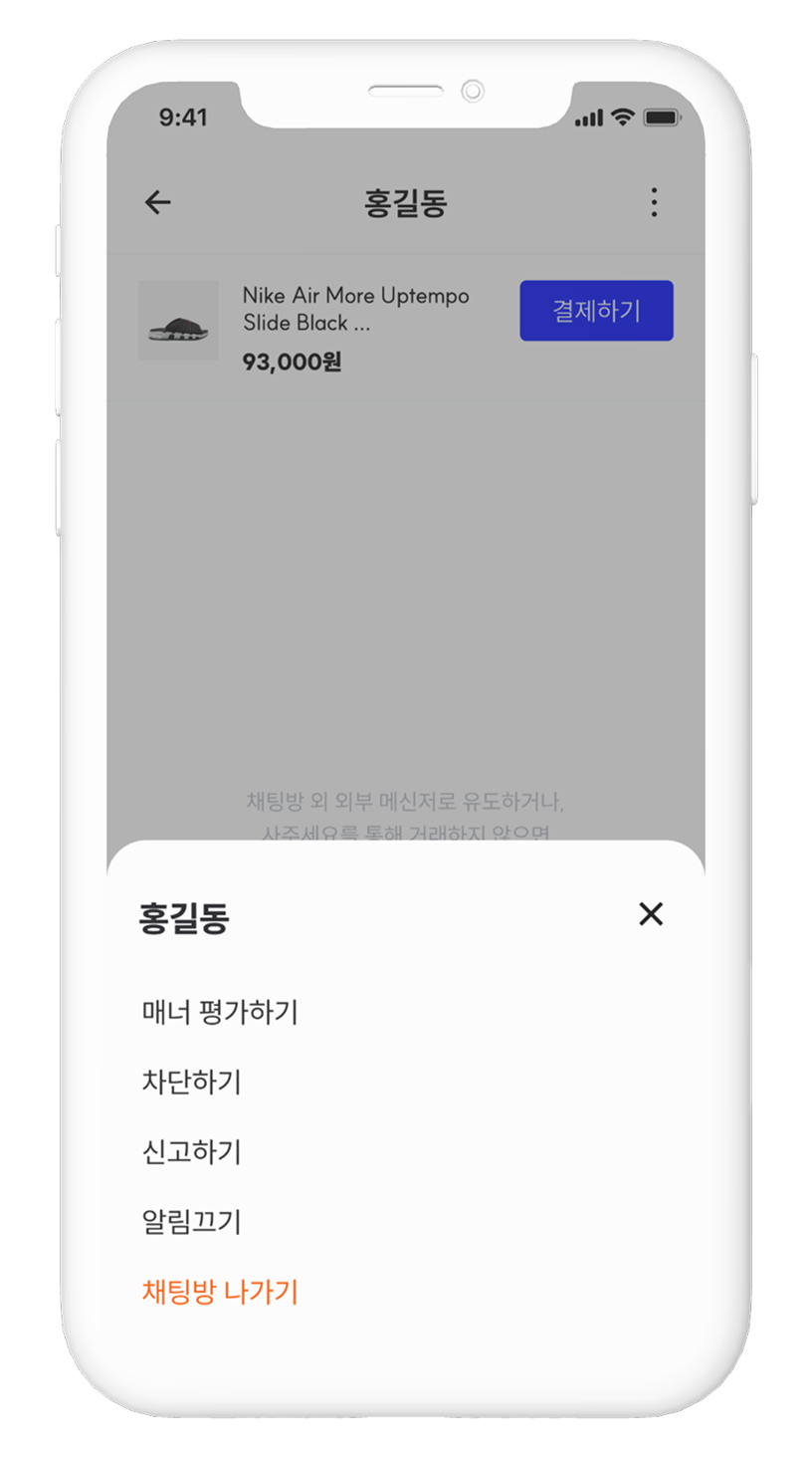 채팅을 시작하면 원활한 거래를 위한 가이드 화면이 팝업됩니다. 1번부터 7번까지 내용을 꼭 읽고 거래를 진행해 주세요.