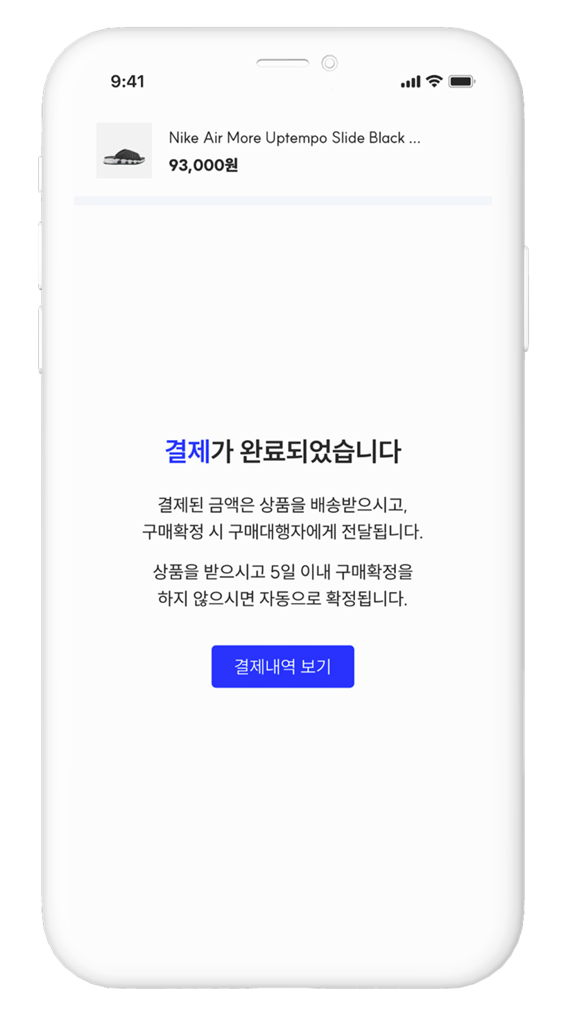 구매자가 상품을 수령하고 [구매 확정]을 눌러야 거래가 완료됩니다. 거래 완료 후, 사주세요를 통해 대행 수익이 정산되어 지급됩니다.