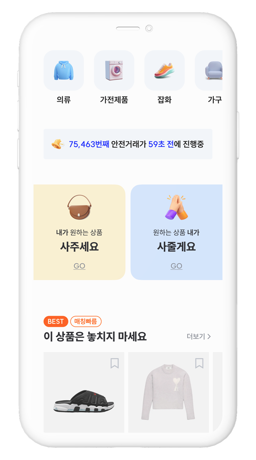 상품 수령 후 구매자가 [구매 확정]을 눌러야 거래가 완료됩니다. 확정 후에만 금액이 전달되어, 사기나 미배송 걱정 없이 안심하고 거래할 수 있습니다.