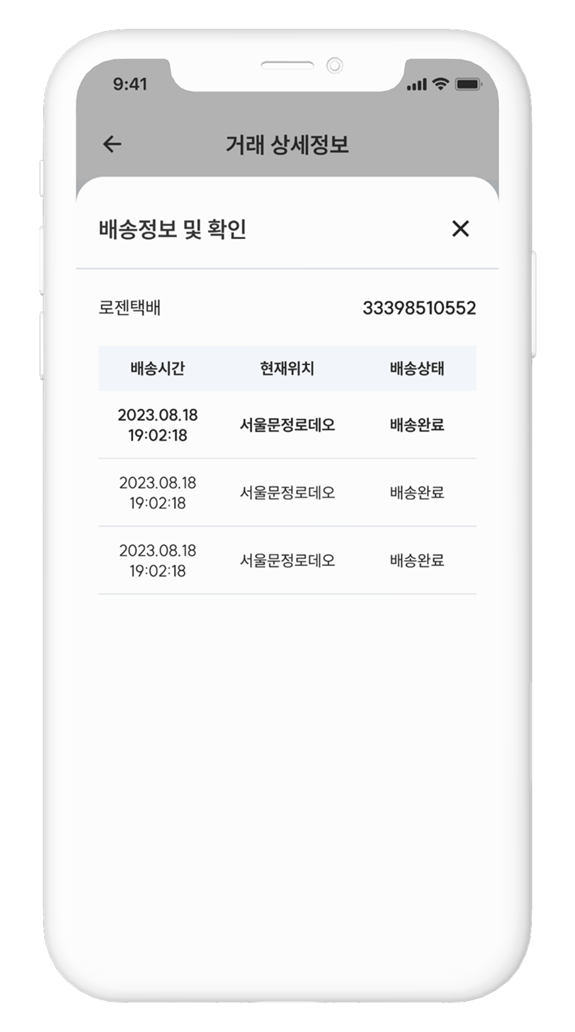 구매대행자가 상품을 발송하면, [사주세요 내역 > 거래 상세정보]에서 배송 상태를 확인할 수 있습니다.